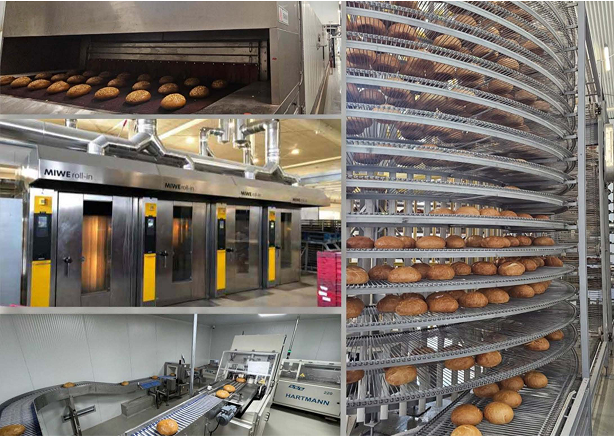 Automatic Bread Production Line – Equipped with a spiral cooler, this line allows for automatic slicing and packing, enhancing both efficiency and product quality.